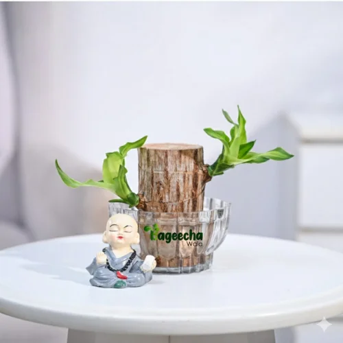 2 Layer Lucky Bamboo Plant in Clear Glass Jar with Color Stones