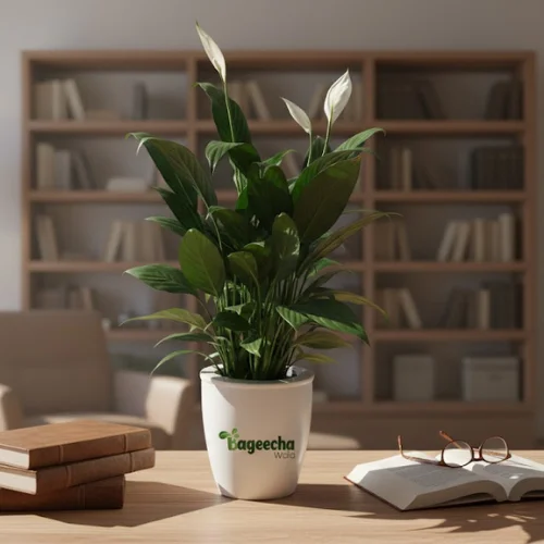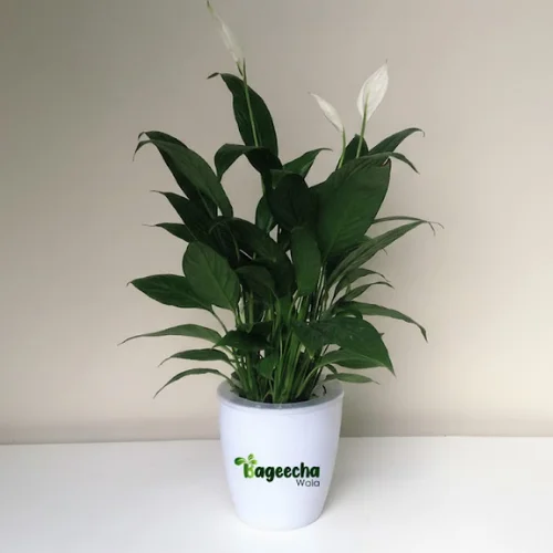 Bring peace and purity to your space with the elegant Peace Lily from Bageechawala. Known for its beautiful white blooms and excellent air-purifying qualities, this low-maintenance indoor plant thrives in low light. Perfectly placed in a stylish pot, it adds freshness and calm to any décor.