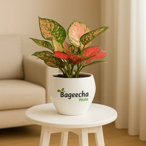 Pink Aglaonema With Pot – a stunning, low-maintenance indoor plant perfect for Lucknow homes and offices, offering vibrant pink foliage and excellent air-purifying benefits.