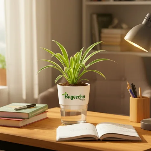 Spider Plant with Self-Watering Pot – a fast-growing, air-purifying indoor plant perfect for Lucknow homes and offices, designed for ultra-low maintenance and fresh indoor greenery.